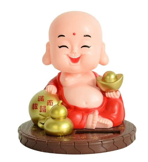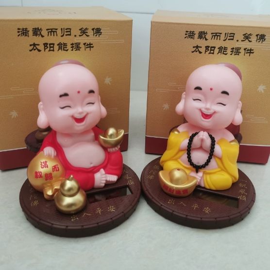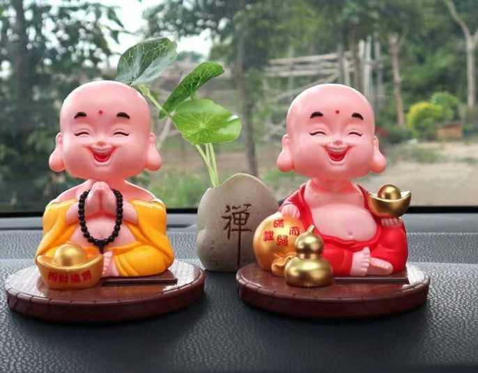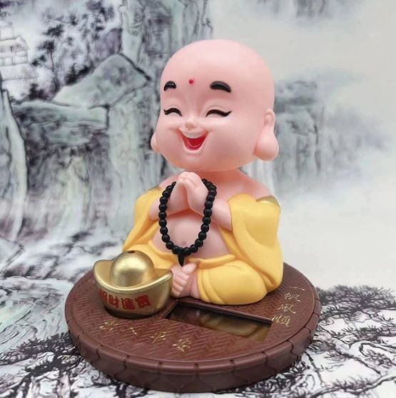9*9*9.3ซม. ส่ายหัวพยักหน้าได้ตุ๊กตาพระพุทธรูปเล็กๆน้อยๆสามเณรพระภิกษุสงฆ์แสงอาทิตย์สำหรับตกแต่งรถบ้านสีเหลืองสีแดง