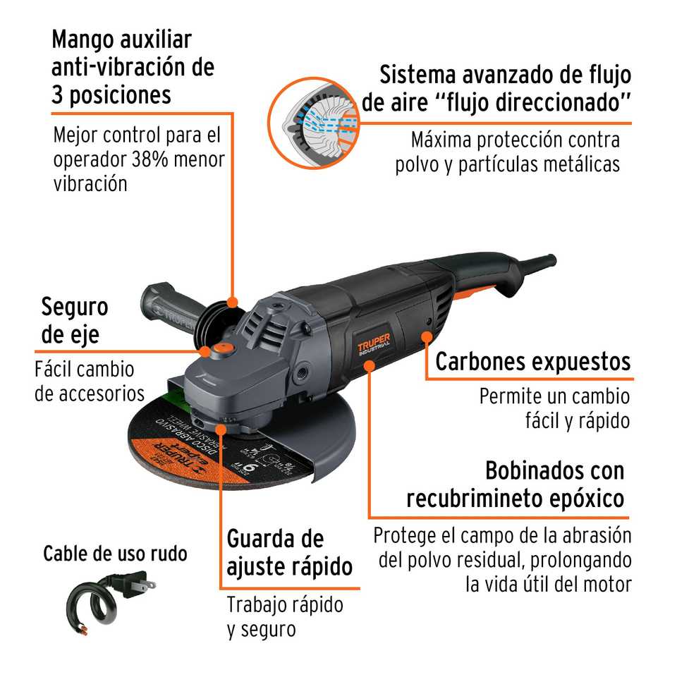 9' Angle Grinder, 2450W, TRUPER EXPERT, 12483