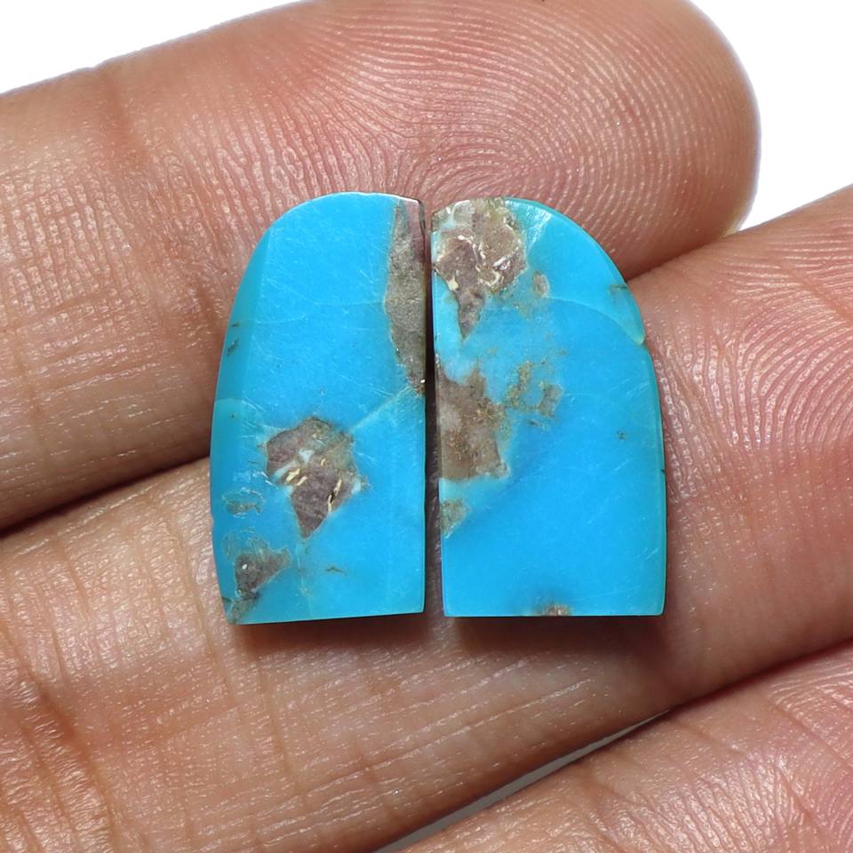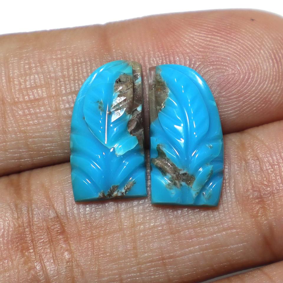 9 Carat Natural Arizona Turquoise Cabochon Flower Carving Match Pair Gemstone Loose Gemstones