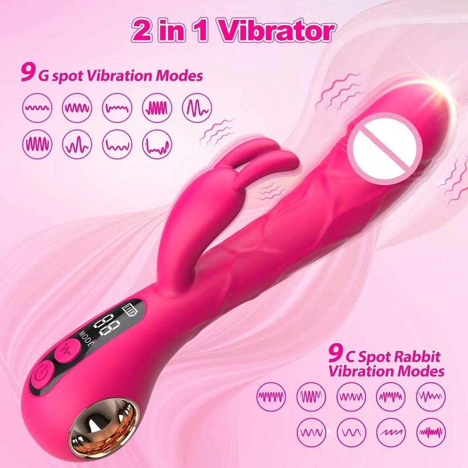 ดิ๊กโด 9 ระดับความถี่ พร้อมจอ LCD รูปทรงกระต่าย เครื่องสั่นสำหรับผู้ใหญ่