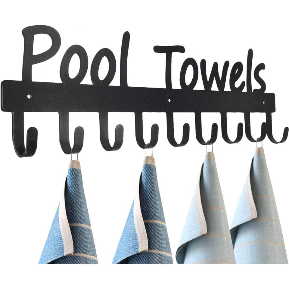ราวแขวนผ้าเช็ดตัวกลางแจ้ง 9 ตะขอ สีดำ สำหรับแขวนผ้าเช็ดตัวริมสระน้ำและเสื้อผ้า/ไม้แขวนเสื้อรวมถึงเสื้อคลุมอาบน้ำ