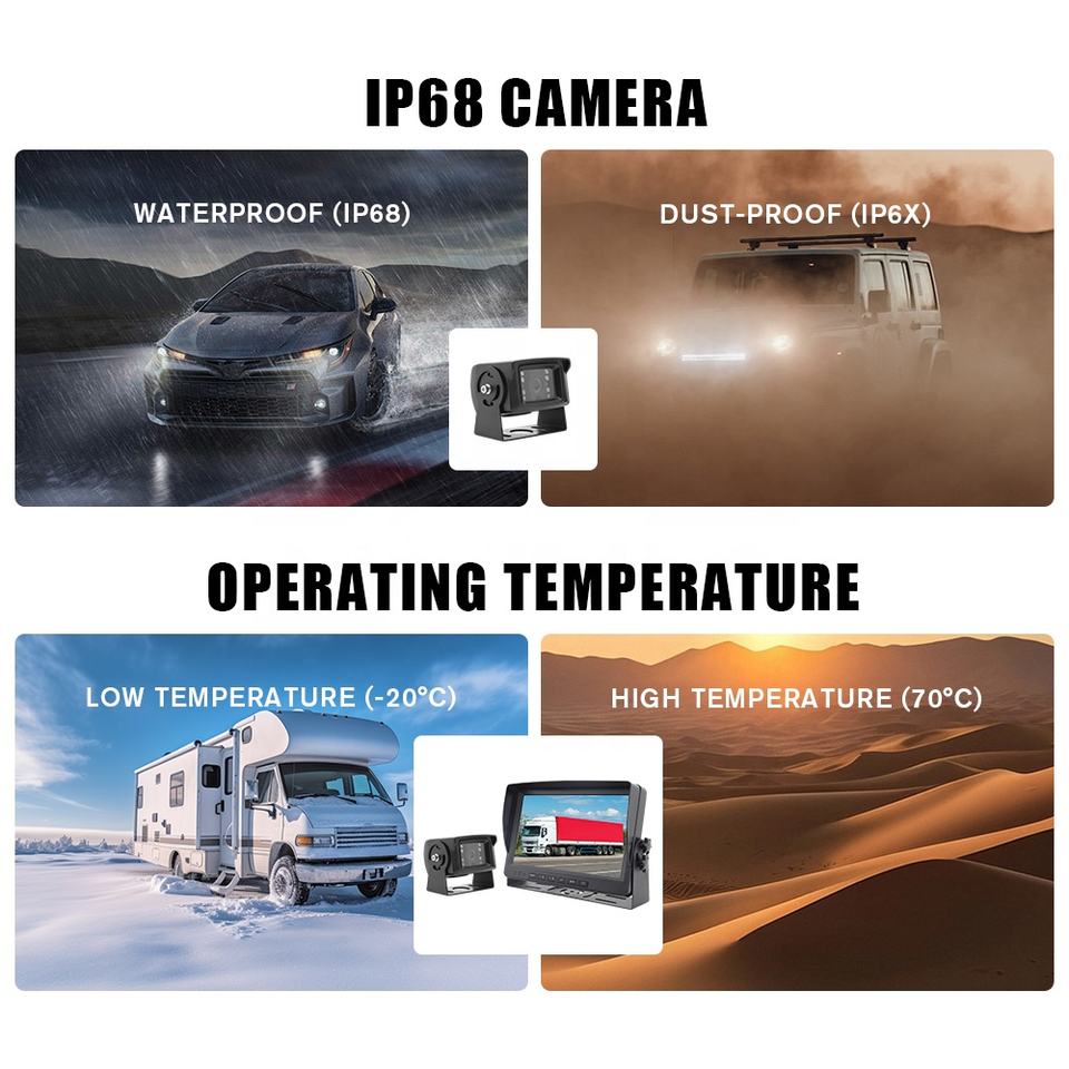 ระบบจัดการยานพาหนะด้วยวิดีโอ AHD ขนาด 9 นิ้ว กล้องติดรถบรรทุก รถพ่วง จอภาพ ชุดกล้องถอยหลัง กระจกมองหลังพร้อมกล้อง
