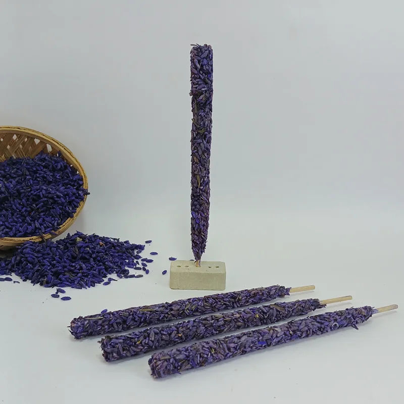 9 Inch Aromatic Herbal Lavender Buds Smudge Incense Sticks with Bambooless Botanical Holders for Aromatherapy Diffuser Supplies