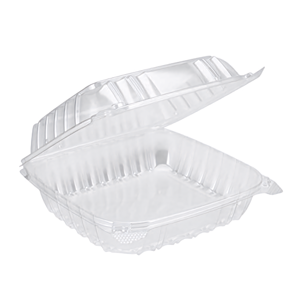 กล่องอาหารกลางวันแบบใช้แล้วทิ้ง PS ใส ขนาด 9 นิ้ว แบบมีบานพับ 1 ช่อง ภาชนะบรรจุอาหารแบบใช้แล้วทิ้ง PS