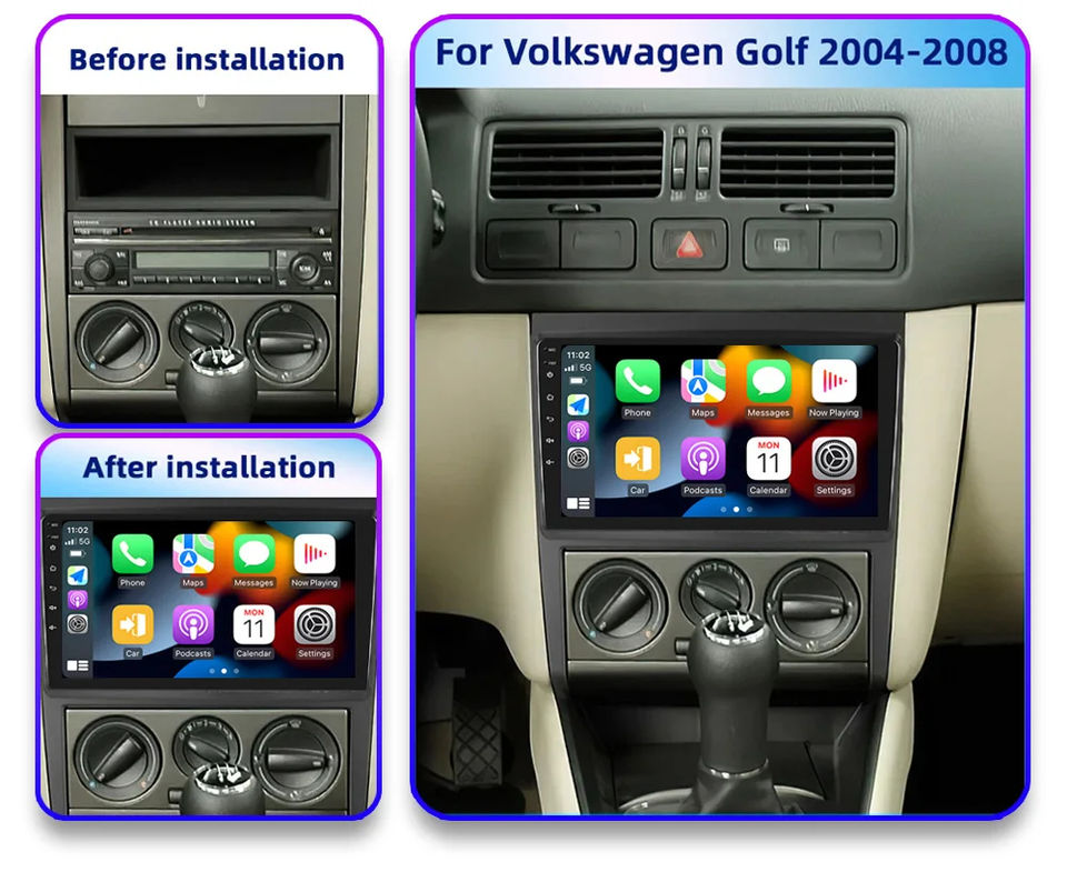 วิทยุติดรถยนต์ระบบไร้สาย Carplay GPS นำทาง Android Auto ขนาด 9 นิ้ว สำหรับรถยนต์ Volkswagen Golf Mk 4 IV Jetta ปี 2004-2008 พร้อมระบบมัลติมีเดียและวิดีโอ