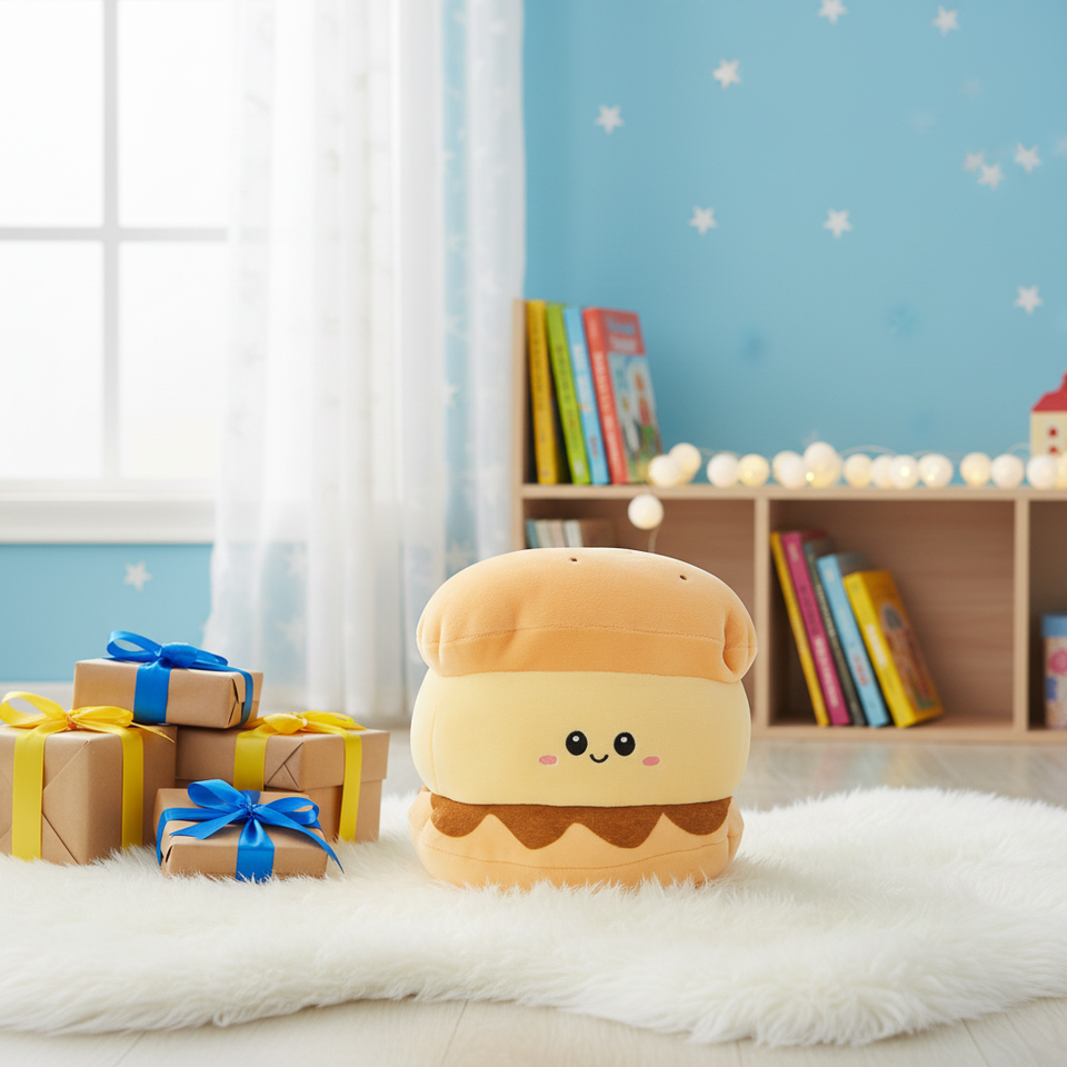 ตุ๊กตาเบอร์เกอร์สีเหลืองขนาด 9 นิ้วสุดหรู รุ่น NYFY-1216 พิมพ์ลายดิจิทัล ผลิตในจีน ของขวัญ ขั้นต่ำสั่งซื้อ 100 ชิ้น