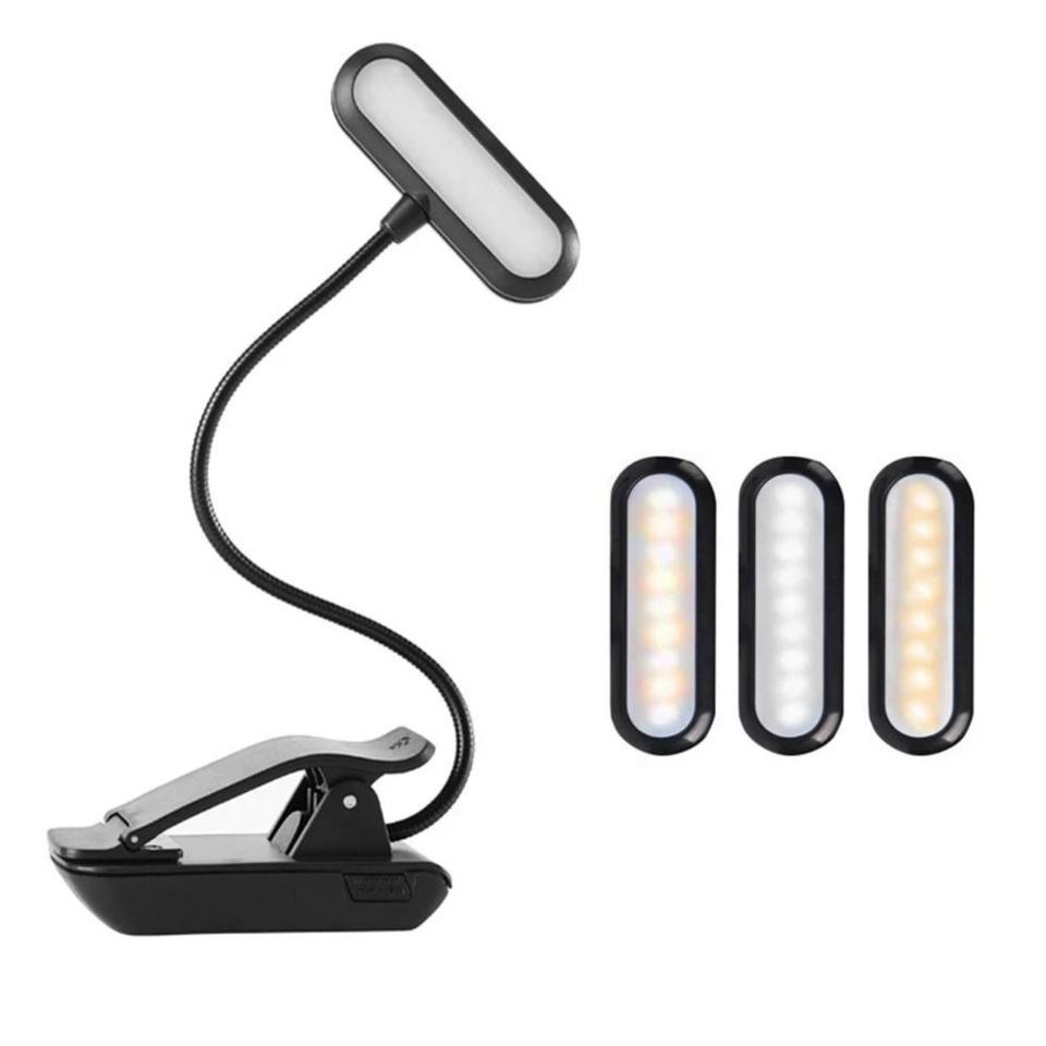 ไฟอ่านหนังสือแบบหนีบ 9 LED ชาร์จผ่าน USB ปรับความสว่างได้ มีไฟแสดงสถานะแบตเตอรี่ ดีไซน์ขนาดเล็ก ยืดหยุ่นได้ ใช้สำหรับอ่านหนังสือตอนกลางคืน ตั้งโต๊ะ หรือใช้กับขาตั้งดนตรี/เปียโน
