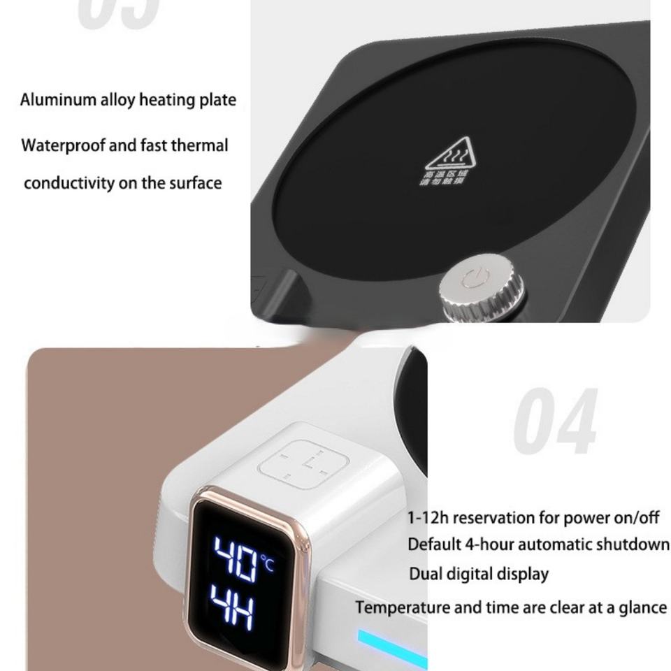 ระดับ 9 40-80 ℃ แผ่นรองแก้วอัจฉริยะควบคุมอุณหภูมิ สำหรับใช้ในบ้านและสำนักงาน เหมาะสำหรับกาแฟร้อน/ชา/นม ที่อุ่นแก้วกาแฟ