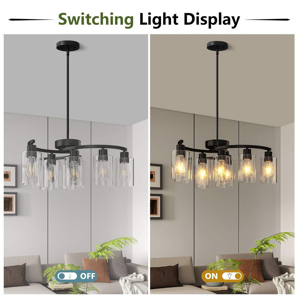 โคมไฟห้อยเพดานสไตล์โมเดิร์นฟาร์มเฮาส์สีดำ 9 ดวง ปรับความสูงได้ เหมาะสำหรับโคมไฟระย้าและโคมไฟห้อย