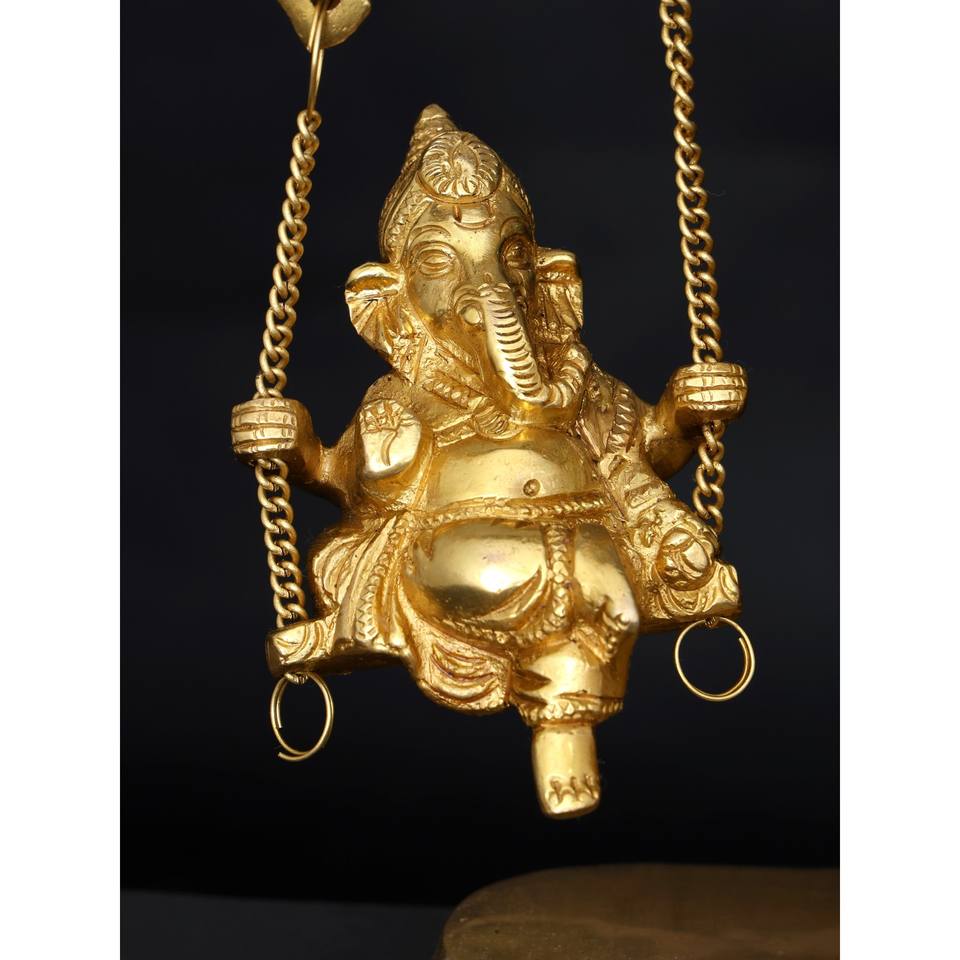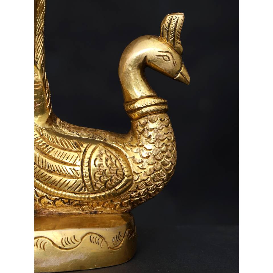 รูปปั้นพระพิฆเนศทองเหลืองขนาด 9 นิ้ว สง่างาม บนฐานนกยูงแกว่ง งานศิลปะคุณภาพพรีเมียม สไตล์อินเดีย