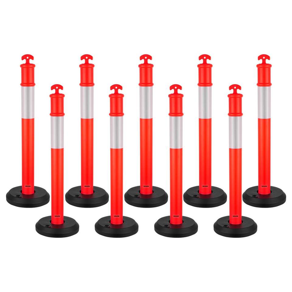 ชุดเสาจราจรแบบหนาพิเศษ 48 นิ้ว 9 ชิ้น พร้อมแถบสะท้อนแสง ชุดกรวยจราจรเพื่อความปลอดภัย 9 ชิ้น ฐานเติมน้ำหนักได้ สำหรับเตือนการจราจร