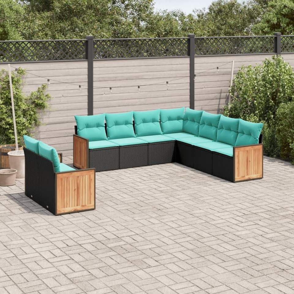 ชุดโซฟาลานบ้านหวายโพลีสีดำ 9 ชิ้นพร้อมเบาะรองนั่งโซฟาในสวน