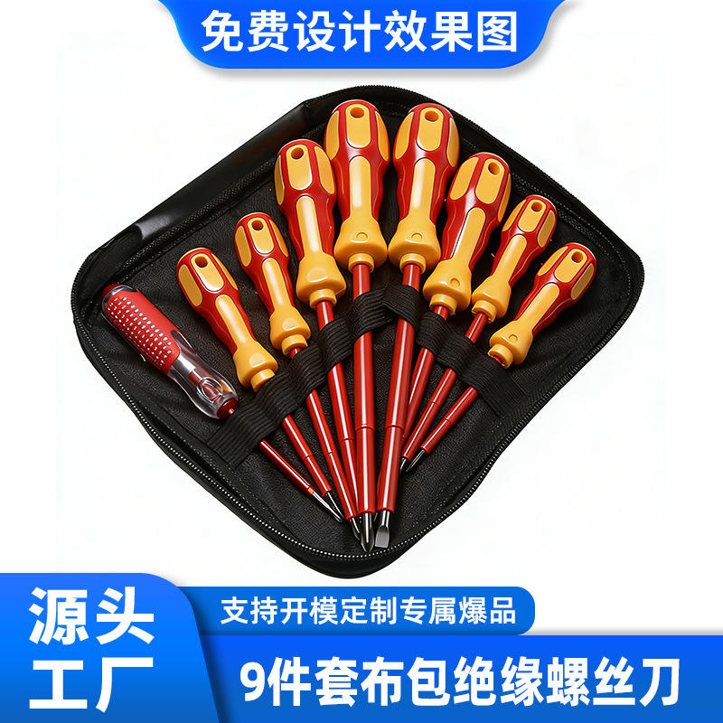 ชุดไขควงหุ้มฉนวน 9 ชิ้น พร้อมปากกาทดสอบ ชุดเครื่องมือช่างไฟฟ้า หัวแบน แม่เหล็ก เกรดอุตสาหกรรม