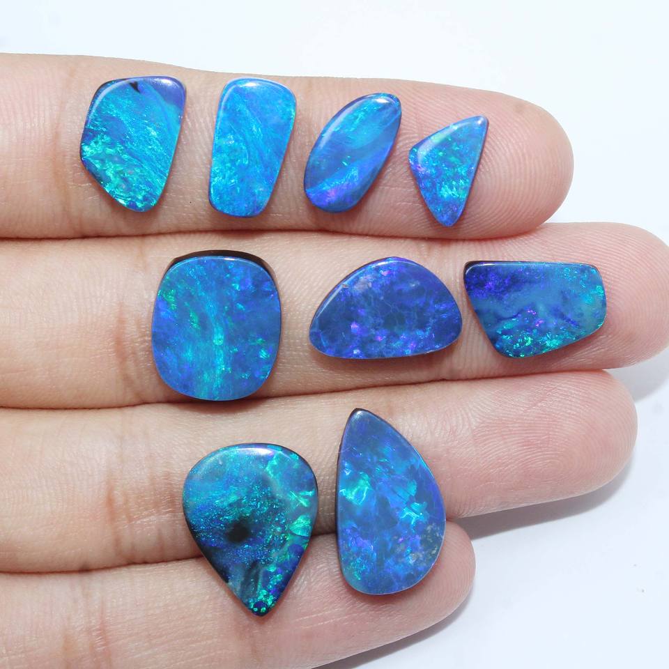 หินอัญมณีทรงหลังเบี้ยทรงหลวม9ชิ้นจากออสเตรเลีย