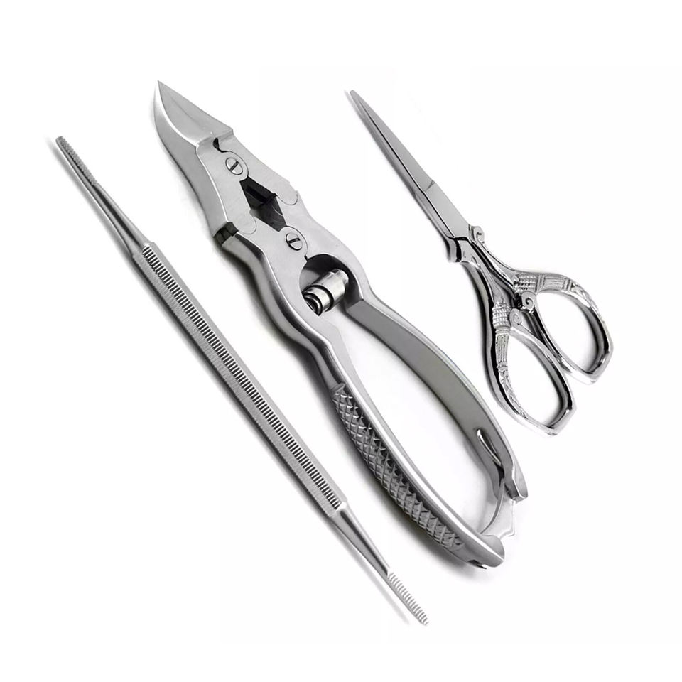 ชุดเครื่องมือตัดเล็บเท้าสแตนเลส 3 ชิ้น พร้อมกรรไกรตัดเล็บและใบมีดโค้งสำหรับใช้กับนิ้วมือ