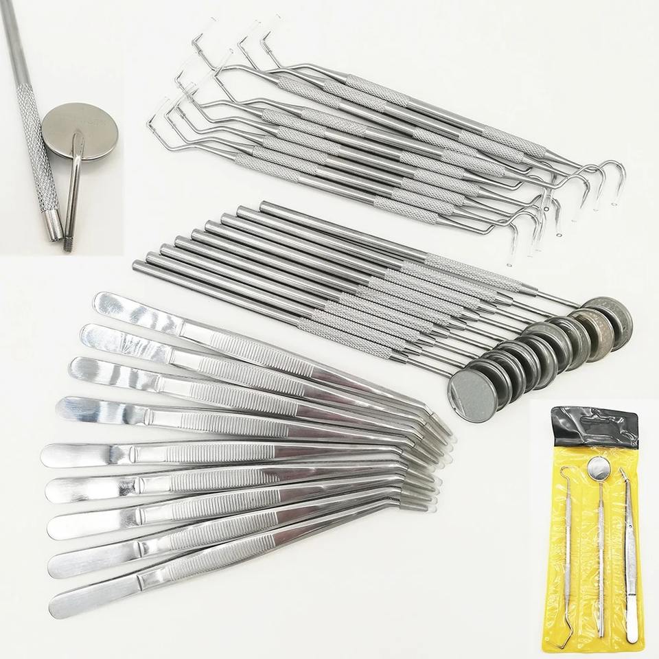 ชุดกระจกตรวจฟันสแตนเลสแบบแมนนวล 9 ชิ้น พร้อมเครื่องมือขูดหินปูนและเครื่องมือทำความสะอาดฟัน ได้รับการรับรองมาตรฐาน CE