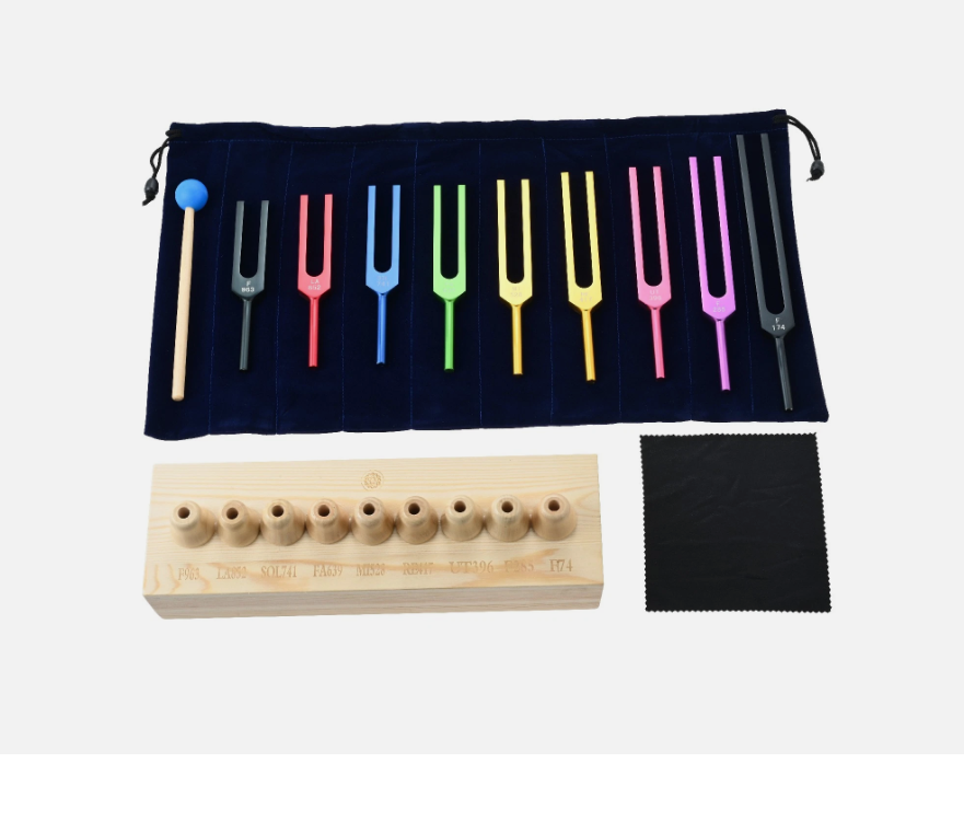 ชุดส้อมเสียงโซลเฟจจิโอ 9 ชิ้นสำหรับการบำบัดด้วยเสียง การทำงานด้วยพลังงาน การทำสมาธิเพื่อความสมดุล