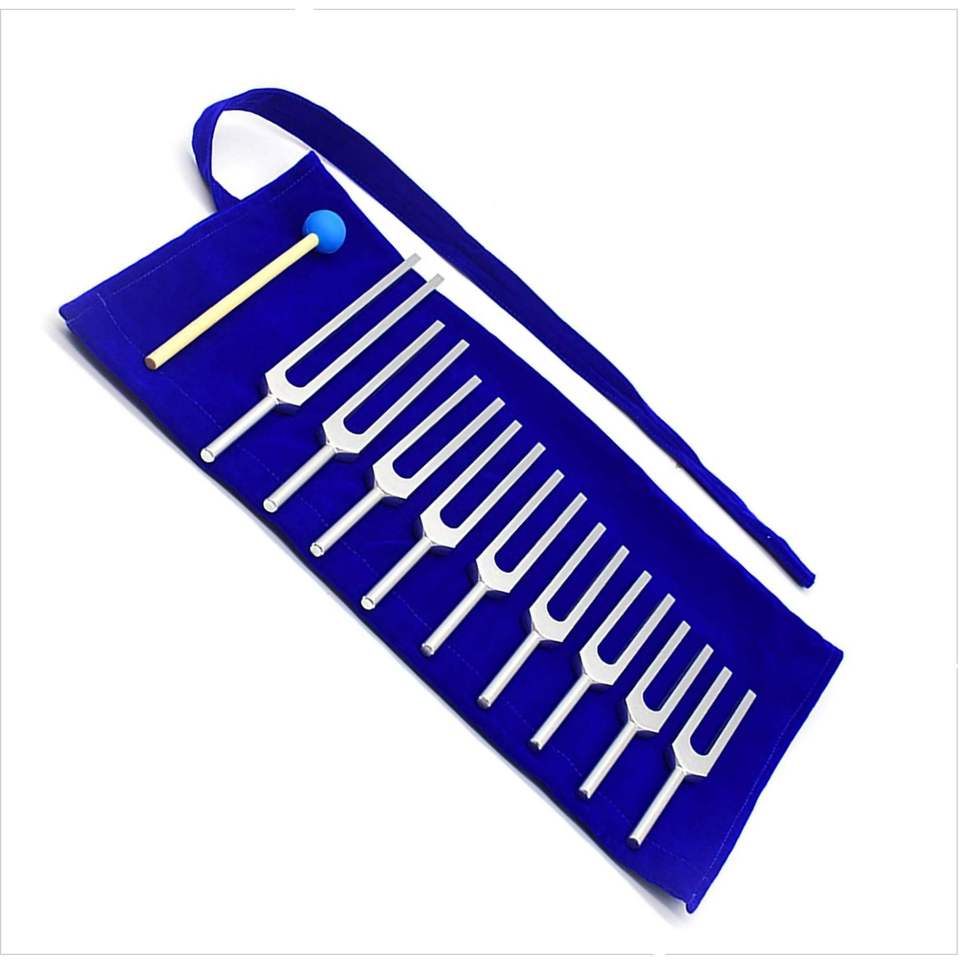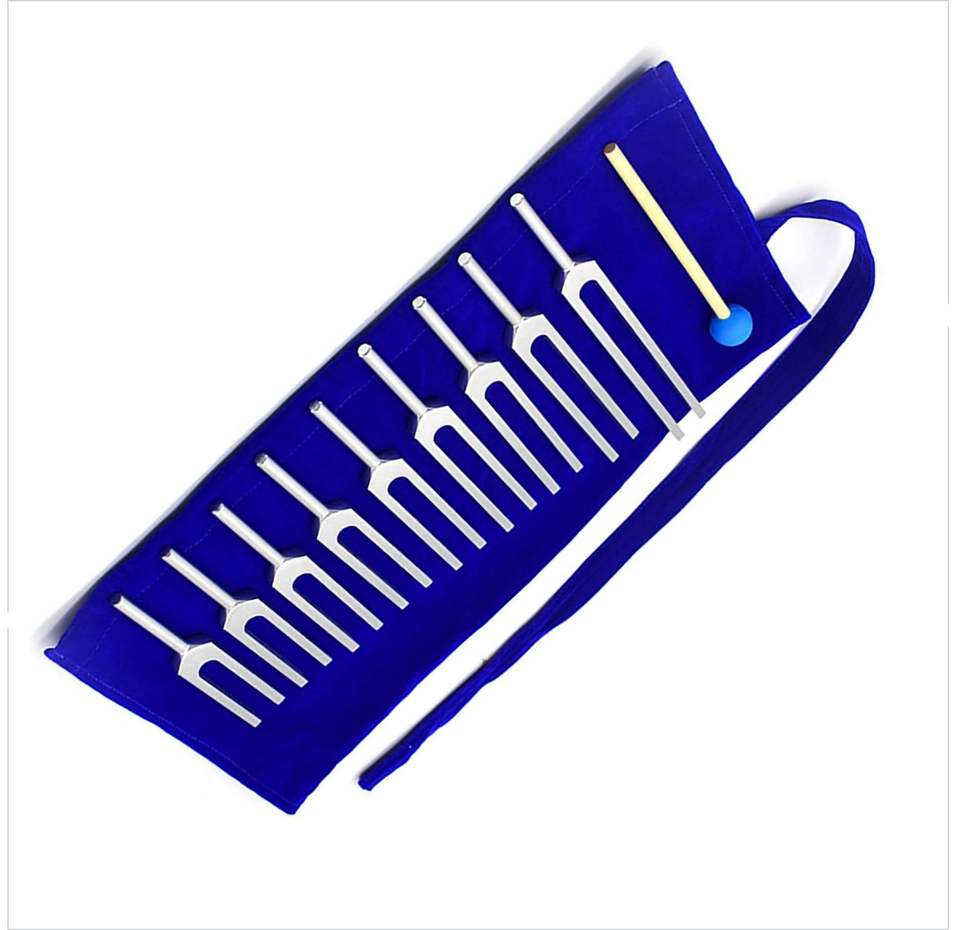 ส้อมเสียงเหล็ก 9 ชิ้น 174Hz-963Hz ใช้ซ้ำได้ พร้อมค้อนผ่าตัด ถุงกำมะหยี่