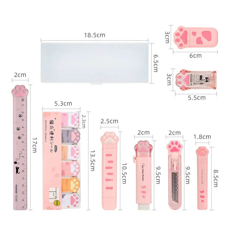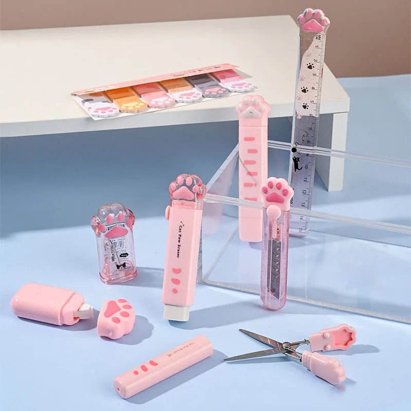 K-MIME 9 in 1 Cat Paw School Stationery Set Gift for Students with Attractive Holder Made in China Chemical-Free