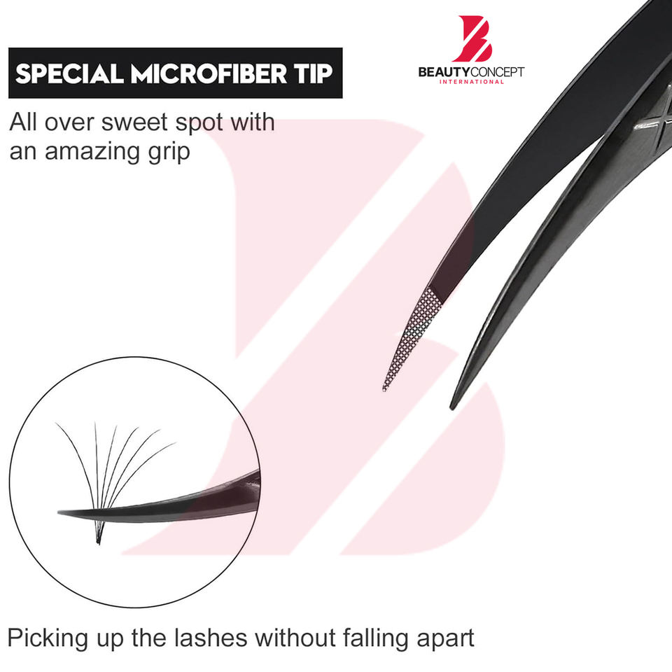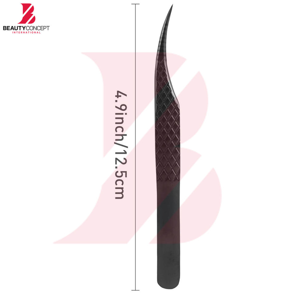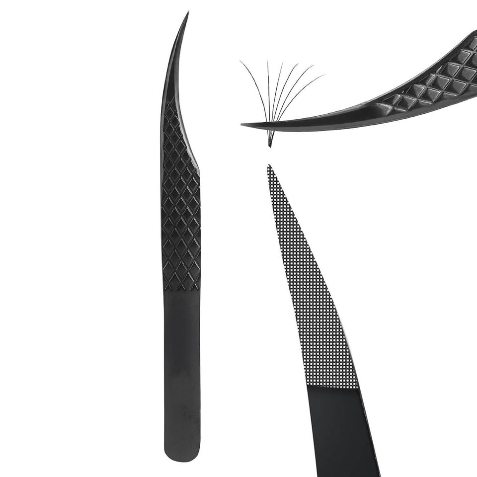 แหนบปลายโค้งแบบใยแก้วนำแสงสำหรับต่อขนตา แหนบปลายกริดขนาดเล็กสำหรับงานต่อขนตาแบบแม่นยำ สำหรับใช้ในร้านเสริมสวย
