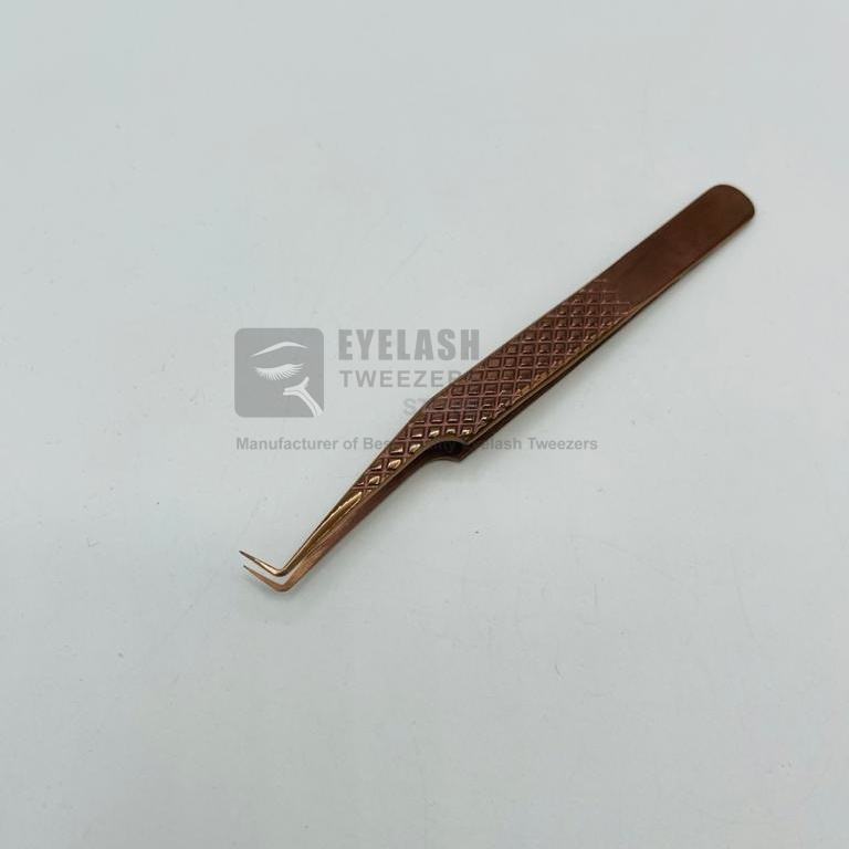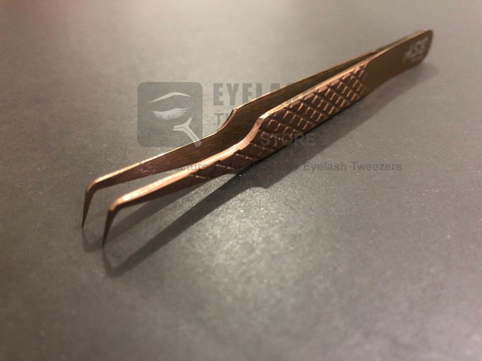 แหนบต่อขนตาแบบด้ามจับเพชร90องศาพลาสม่าสีโรสโกลด์ญี่ปุ่นปลายแหลมทำจากสแตนเลสยี่ห้อส่วนตัว