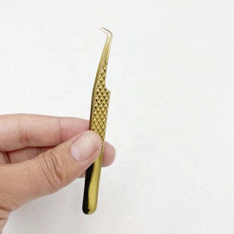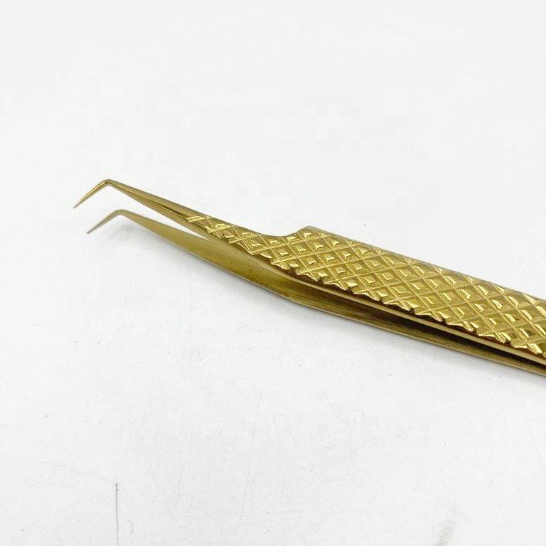 แหนบติดขนตาปลายแหลมคุณภาพสูง สแตนเลสสตีล ปลายโค้ง 90 องศา พร้อมโลโก้สั่งทำสำหรับมืออาชีพ ขายส่ง