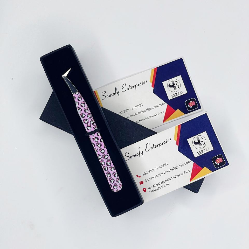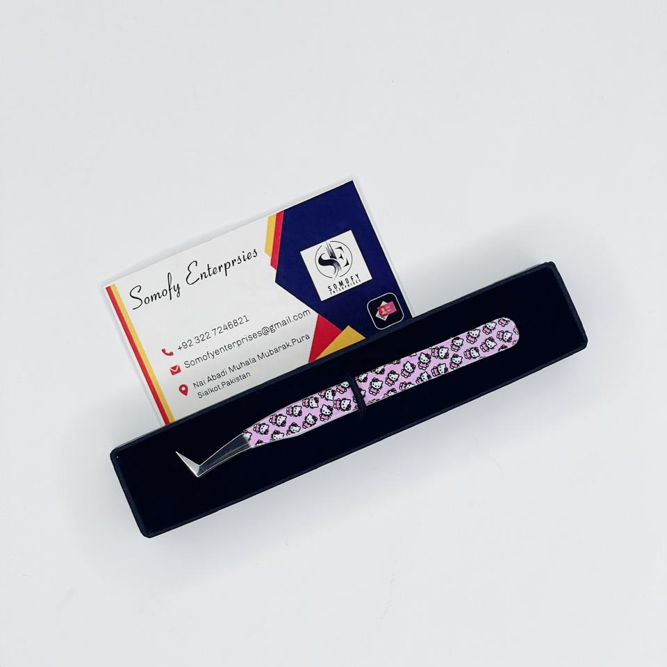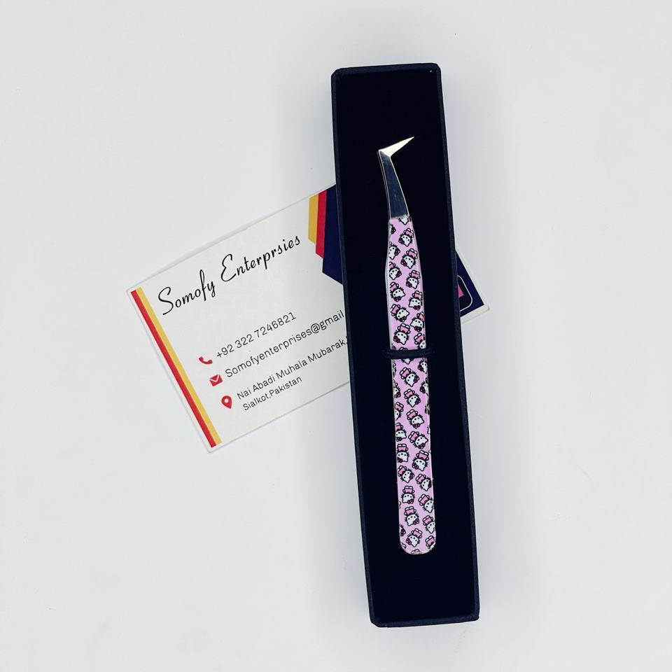 แหนบต่อขนตา 10 มม. สแตนเลสเคลือบสีชมพู 90 องศา ลายแมว ออกแบบเองได้ พร้อมโลโก้ งานละเอียด ทนทาน