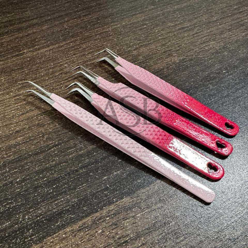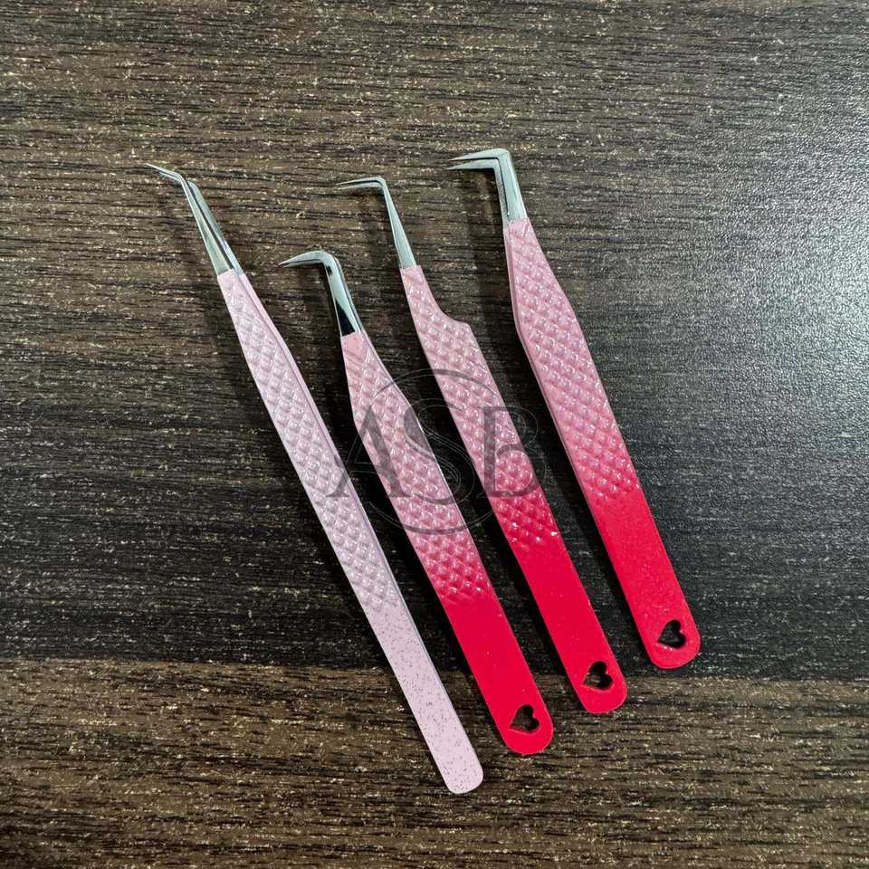 แหนบปลายมน 90 องศา สีชมพูไล่เฉด พร้อมหัวใจ จับขนตาแน่น แหนบต่อขนตา อุปกรณ์เสริมความงาม รับทำโลโก้ตามสั่ง