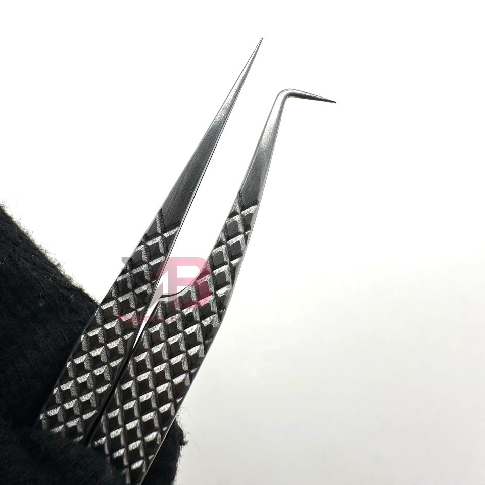 90 Degree Skinny Boot Diamond Grip Dull Finish Eyelash Extension Tweezers Japanese Stainless Steel Custom Logo