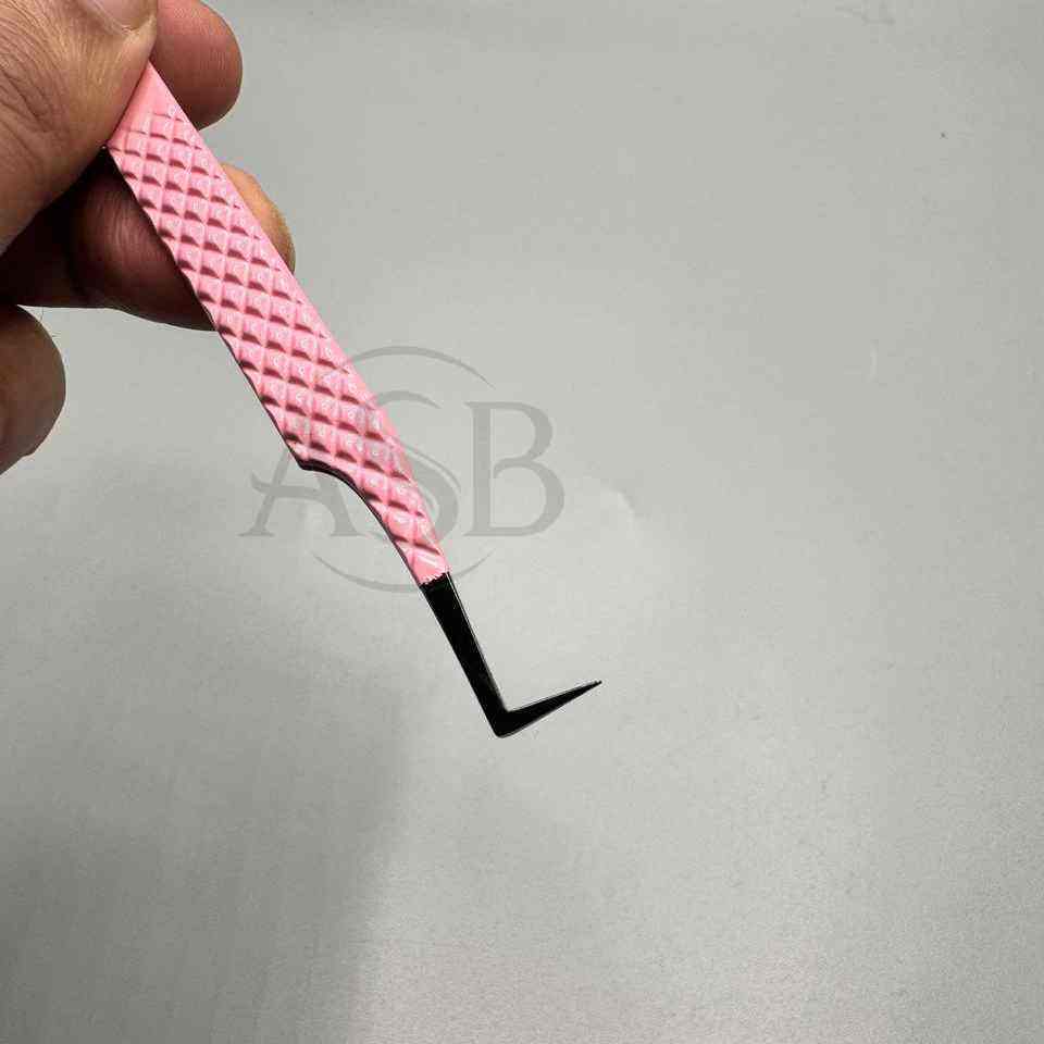 แหนบต่อขนตาปลายเรียว90องศาทำจากสแตนเลสสีดำสีชมพู
