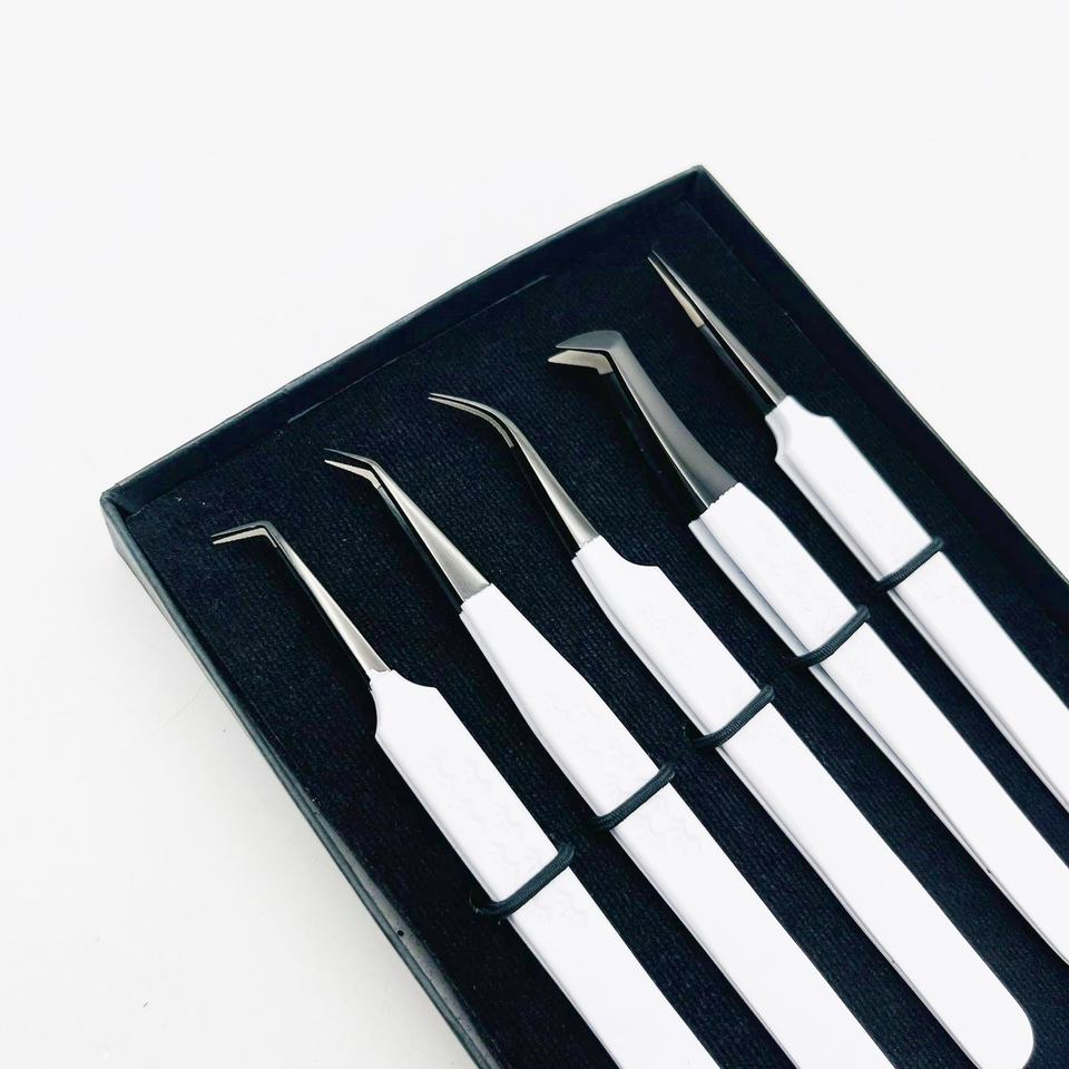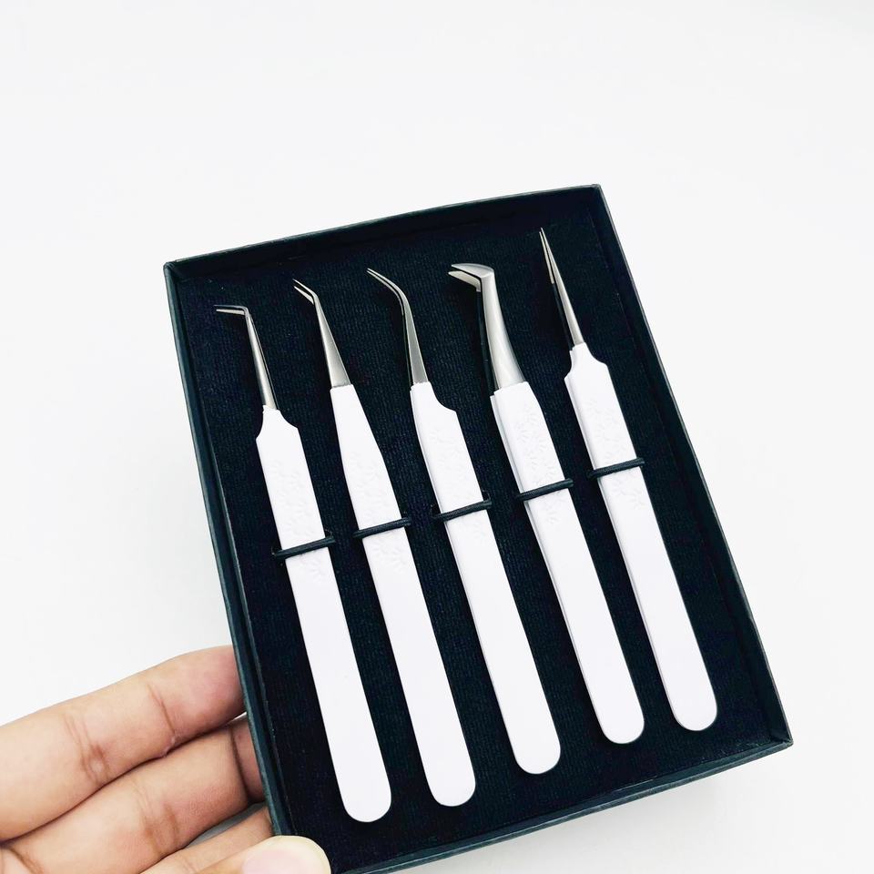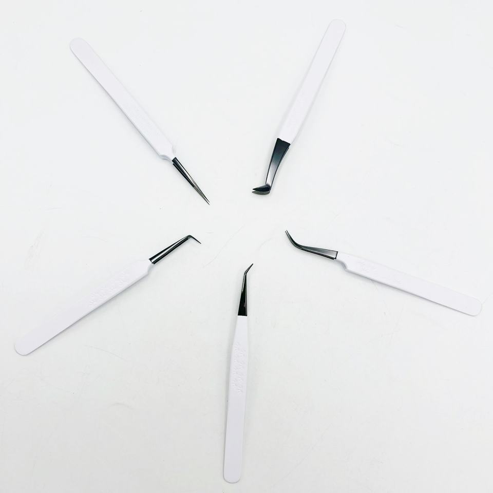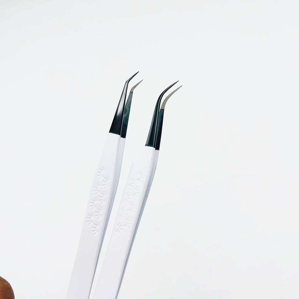 ที่หนีบผม90องศาปลายงอสีดำปลายงอ45องศาทำจากสเตนเลสสตีลแข็งเคลือบผงสีขาวปลายไฟเบอร์สำหรับขนตา