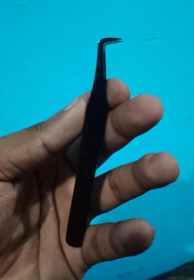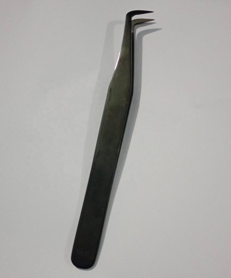 แหนบต่อขนตาแบบสแตนเลสสีดำ90องศาพร้อมอุปกรณ์ต่อขนตาปลายโค้งมน