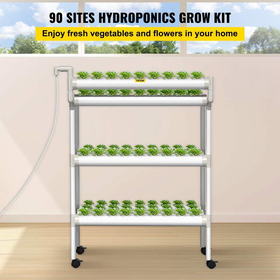 ระบบปลูกพืชไฮโดรโปนิกส์ในร่มแบบ90ไซต์10ท่อ PVC-U 3ชั้นปั๊มน้ำจับเวลารังฟองน้ำสำหรับผลไม้