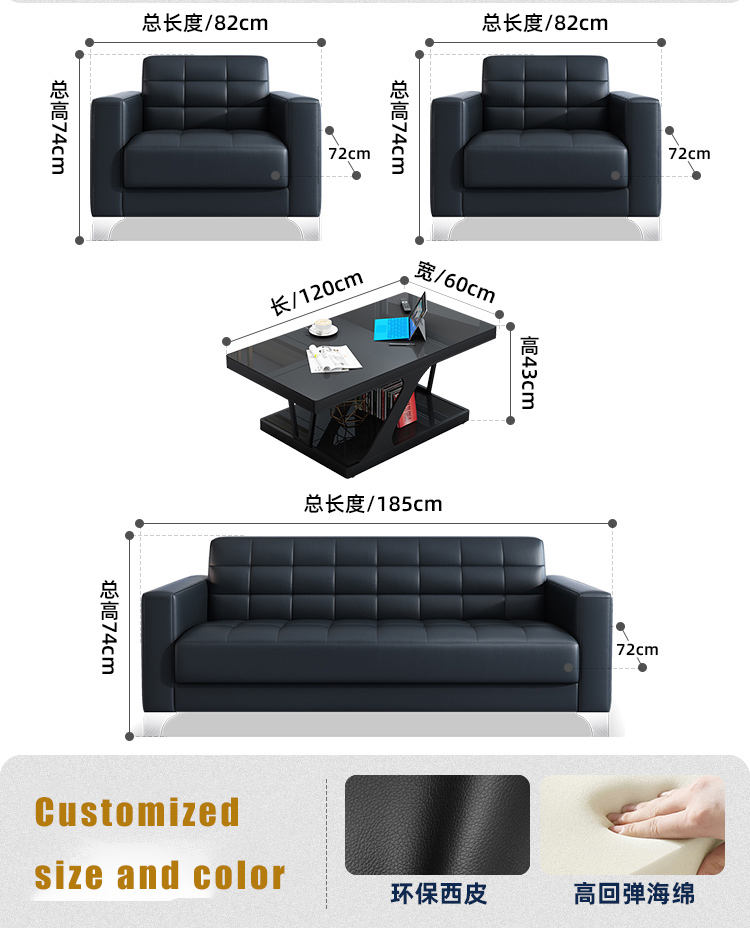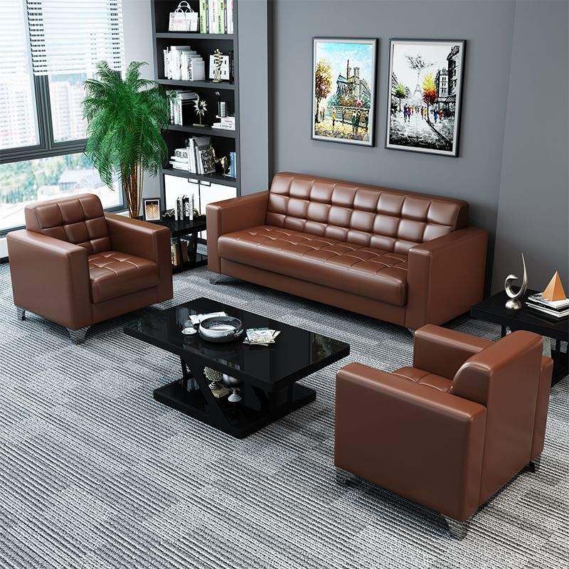 ชุดโซฟาสำนักงานหรูหราใน902ชุดโต๊ะกาแฟการต้อนรับทางธุรกิจโซฟาหนังสำหรับผู้จัดการทั่วไปสำนักงานทนทาน