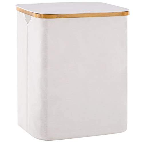 ตะกร้าผ้าไผ่ขนาด 90 ลิตร พร้อมฝาปิด กันน้ำ และพับเก็บได้ สำหรับตู้เสื้อผ้าและห้องน้ำ สีดำ