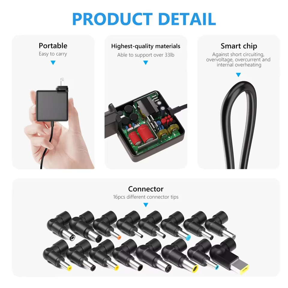 อะแดปเตอร์ชาร์จโน้ตบุ๊กแบบ PD 90W รองรับทุกยี่ห้อ พร้อมระบบป้องกันไฟเกิน (OTP/OVP) สายยาว 1.8 เมตร ได้รับการรับรองมาตรฐาน CE/FCC/ROHS