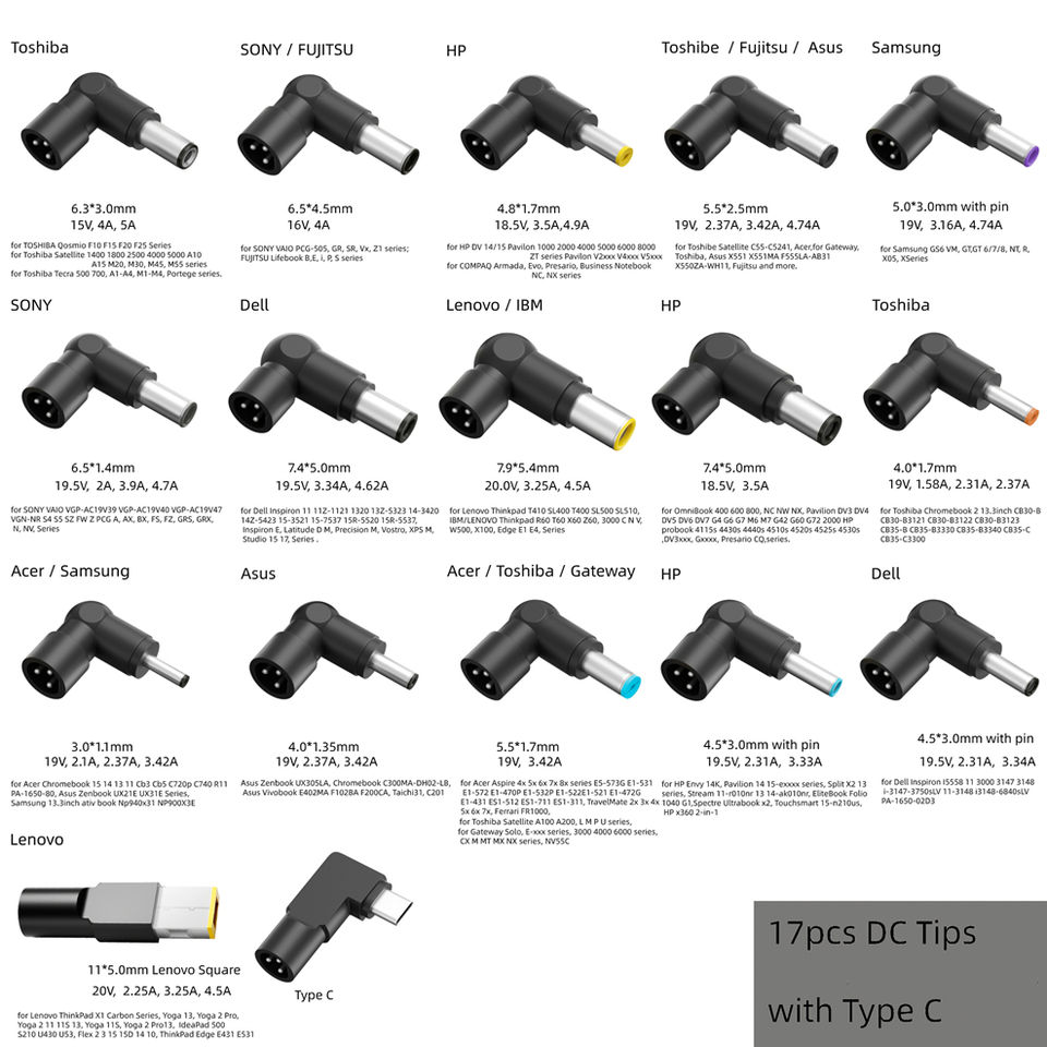 DC connector:16 Pcs Popular DC Tips