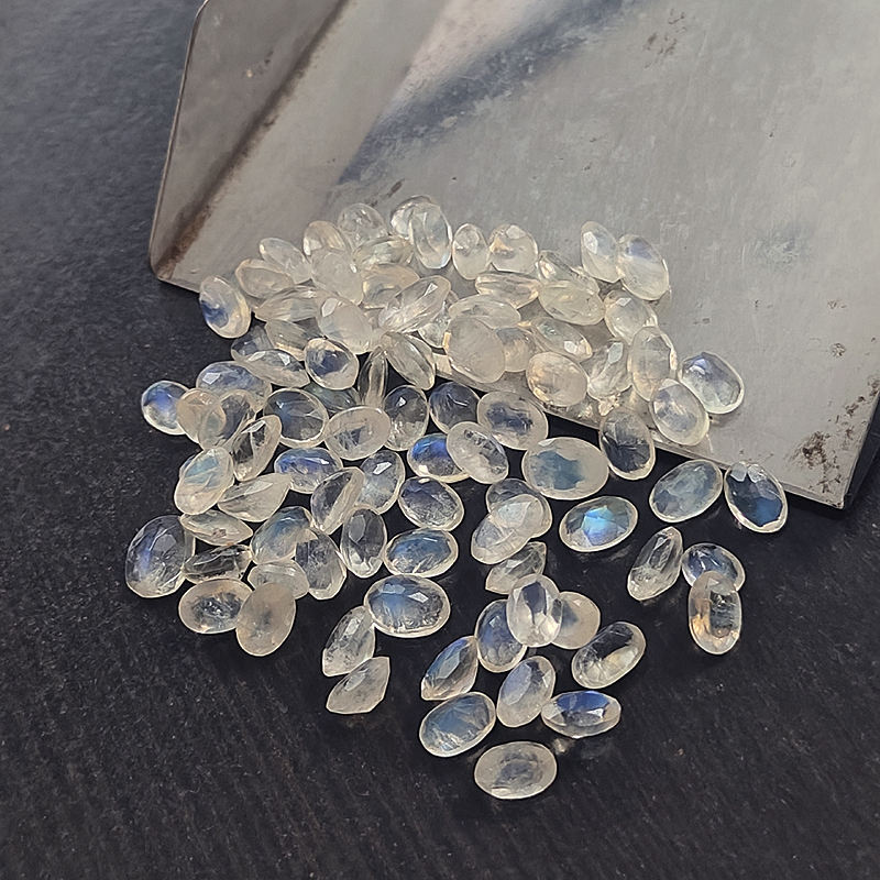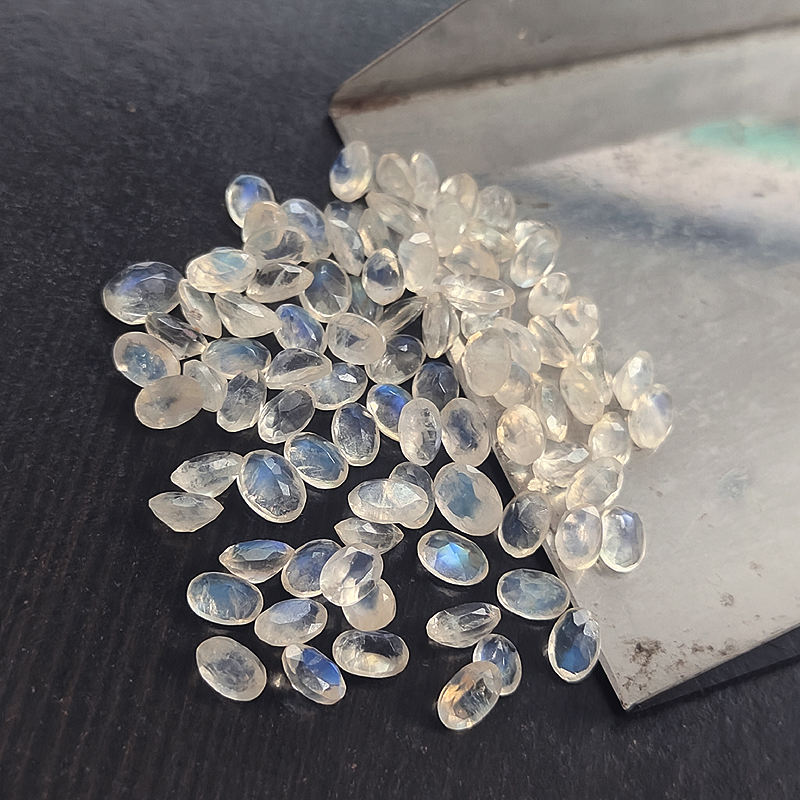 91 Pc of Natural Rainbow Moonstone 5x4mm to 7x5mm Oval Facet 45 Cts Iroc Sales Blue Fire Moonstone Loose Gemstones Cut US$25.71