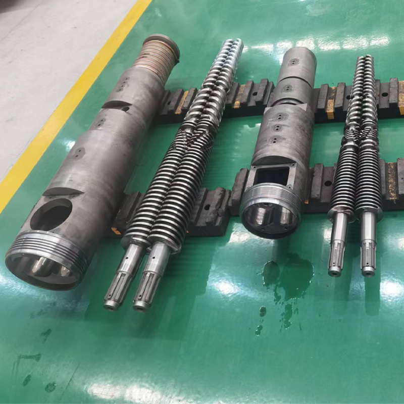 เครื่องอัดรีดแบบสกรูคู่ทรงกรวย 92/188 วัสดุไนไตรด์ 38CrMoALA สำหรับรีไซเคิลพลาสติก รุ่น HB280 HV900 แบบยาว