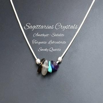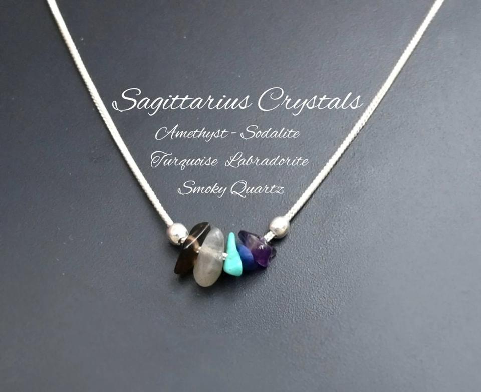 สร้อยจี้ดีสีเงิน92.5พร้อมโซ่สร้อยคอราศีธนูคริสตัลดิบราศีราศีอัญมณีโชคเกอร์คริสตัล