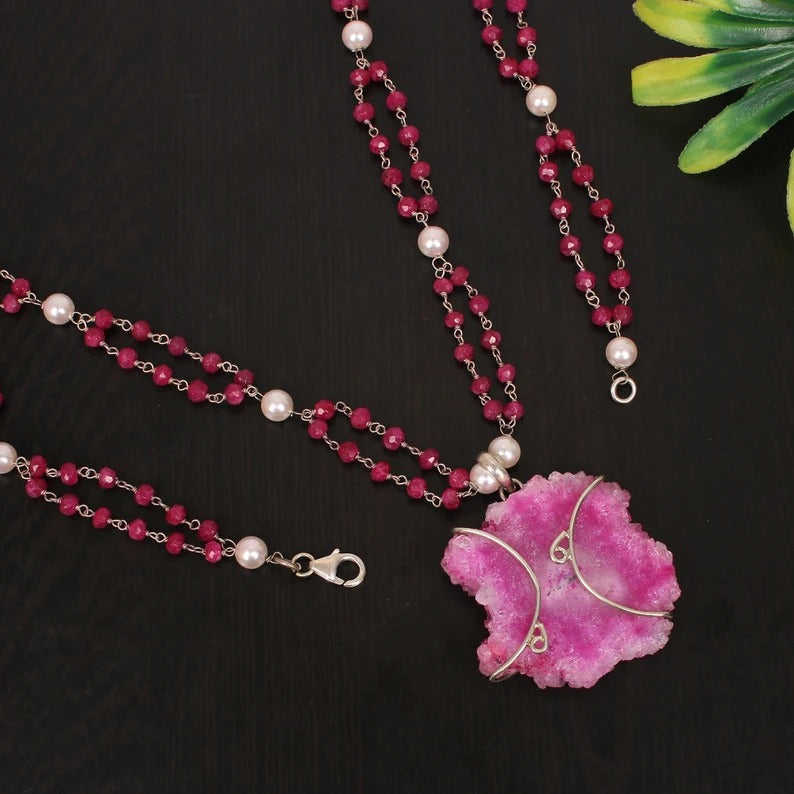 Pink Solar Druzy & Pearl and Ruby CorundumGemstone