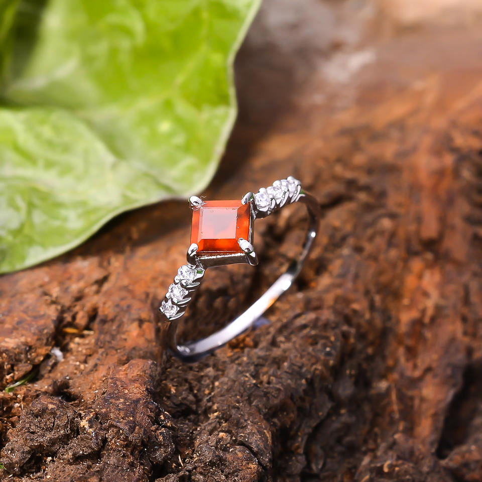 แหวน1.2กรัมเงินแท้พลอยโกเมนเฮสโซไนท์ธรรมชาติรูปทรงสี่เหลี่ยมอัญมณีดีไซน์เรียบง่ายทางศาสนาล่าสุดใน92.5
