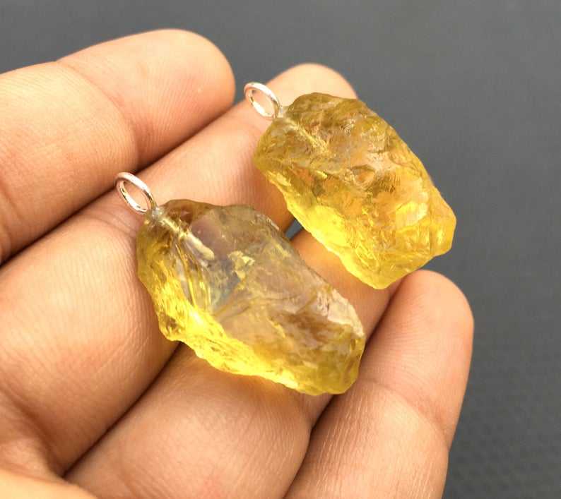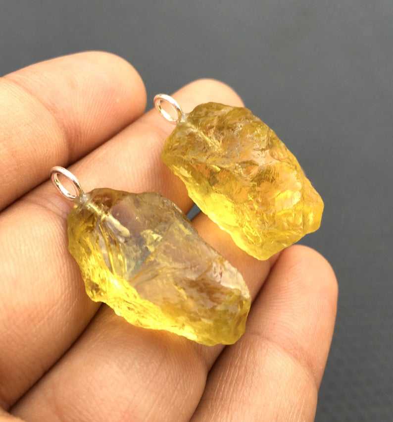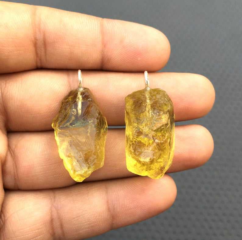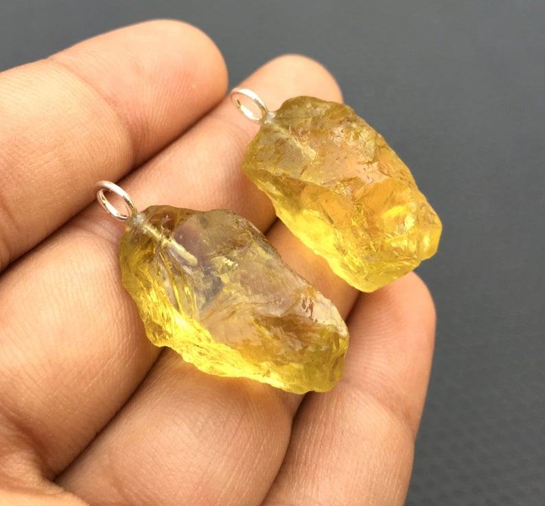 92.5 Sterling Silver 2 Pieces Beautiful Handmade Charm Pendant Natural Lemon Quartz Gemstone Untreated Rough