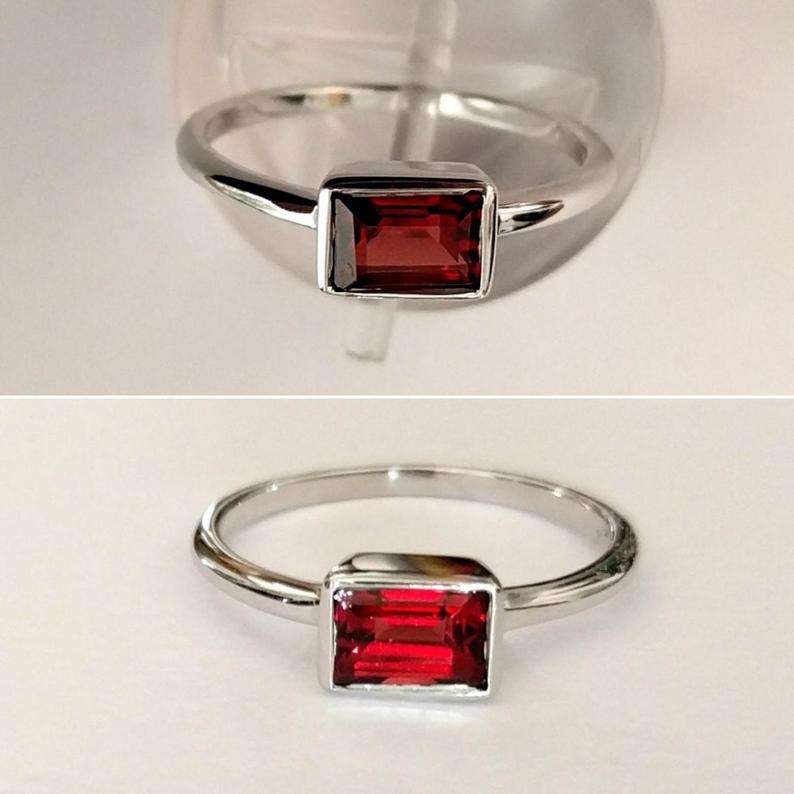 แหวนเงินแท้92.5สำหรับผู้หญิงคลาสสิกแหวนพลอยโกเมนธรรมชาติเจียระไนเป็นรูปสี่เหลี่ยมผืนผ้าเครื่องประดับที่สง่างาม