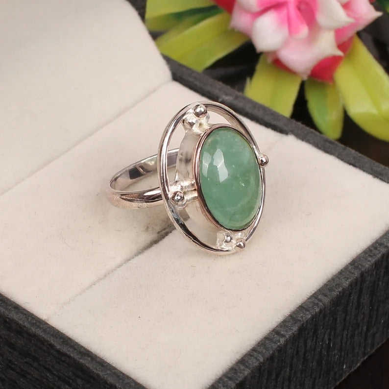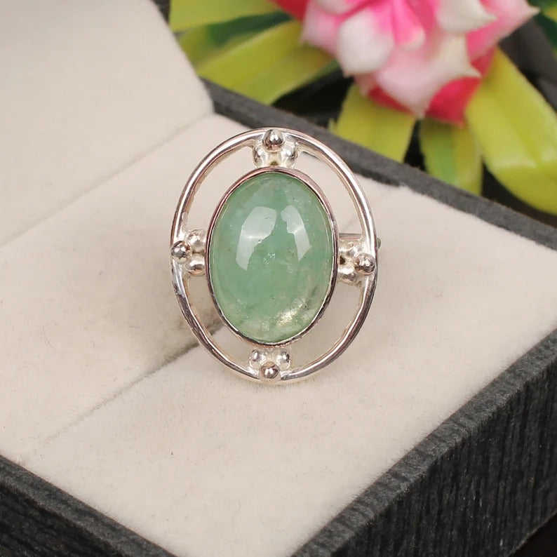 แหวนเงินรูปเรขาคณิตสีเงิน92.5อัญมณีคริสโซเพรสธรรมชาติทรงไข่ตัดโรเดียมชุบเครื่องประดับชั้นดี
