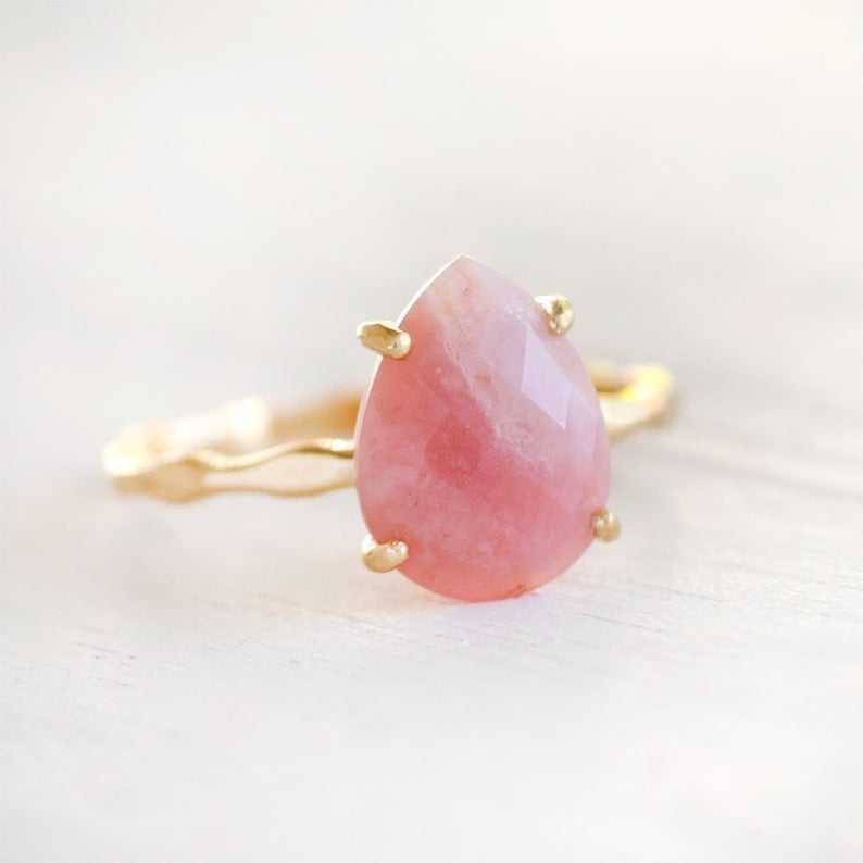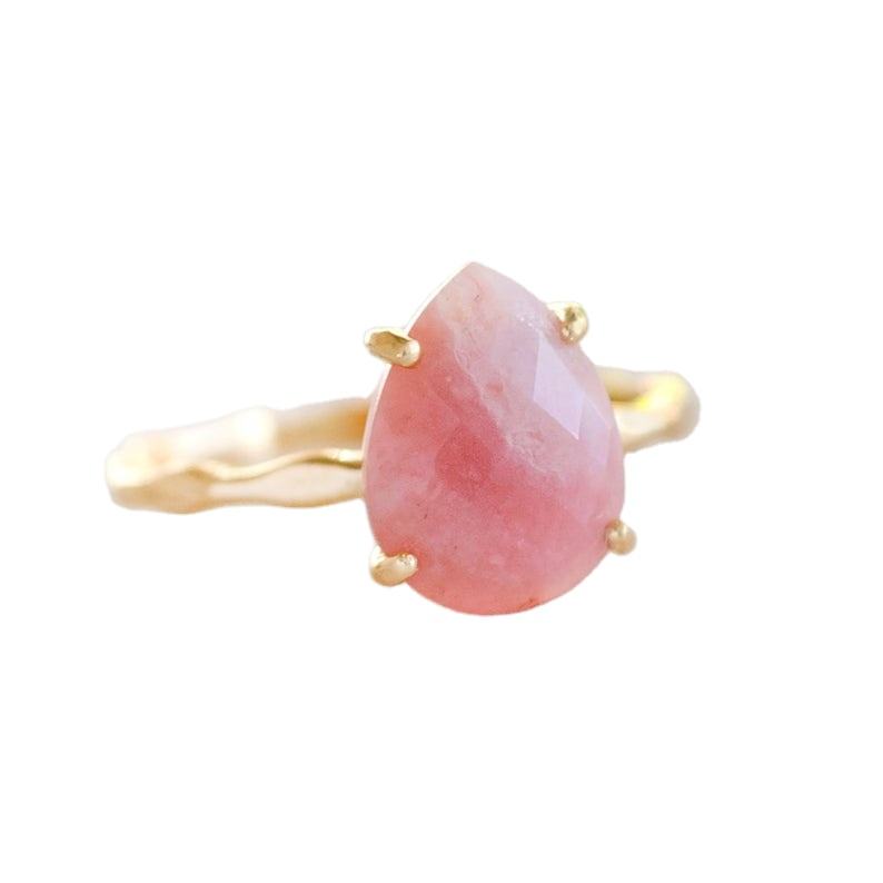 แหวนเงินแท้ขัดเงาสีทองอัญมณีรูปหน้าเหลี่ยมเพชรพลอยสีชมพู92.5
