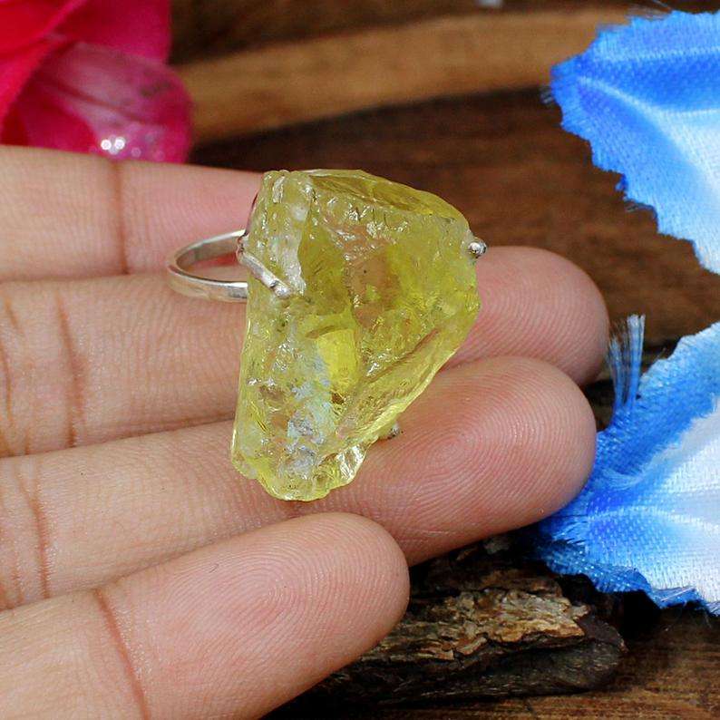 แหวนใส่นิ้วทำด้วยมือทำมือทำด้วยพลอยสเตอร์ลิงเงินธรรมชาติสีโทแพซไม่ผ่านการบำบัดรูปทรงหยาบดีไซน์เรียบง่ายล่าสุดของ92.5