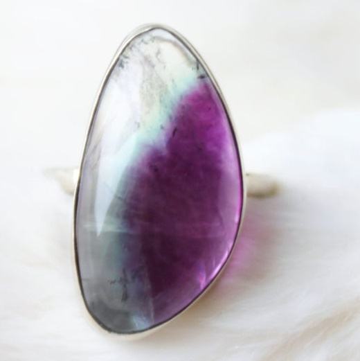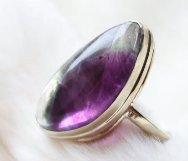 92.5เงินสเตอร์ลิงธรรมชาติสีม่วงฟลูออไรต์เรียบรูปไข่พลอยทำด้วยมือแหวนผู้หญิงเครื่องประดับขายส่ง