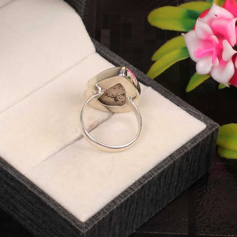 แหวนเงินแท้ 92.5 ประดับพลอยไพค์เจอสเปอร์ ขนาด 23x16 มม. ฝังแบบ Bezel ชุบโรเดียม สไตล์น่ารัก ลายตัวเลข น้ำหนัก 5.62 กรัม