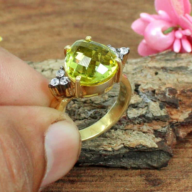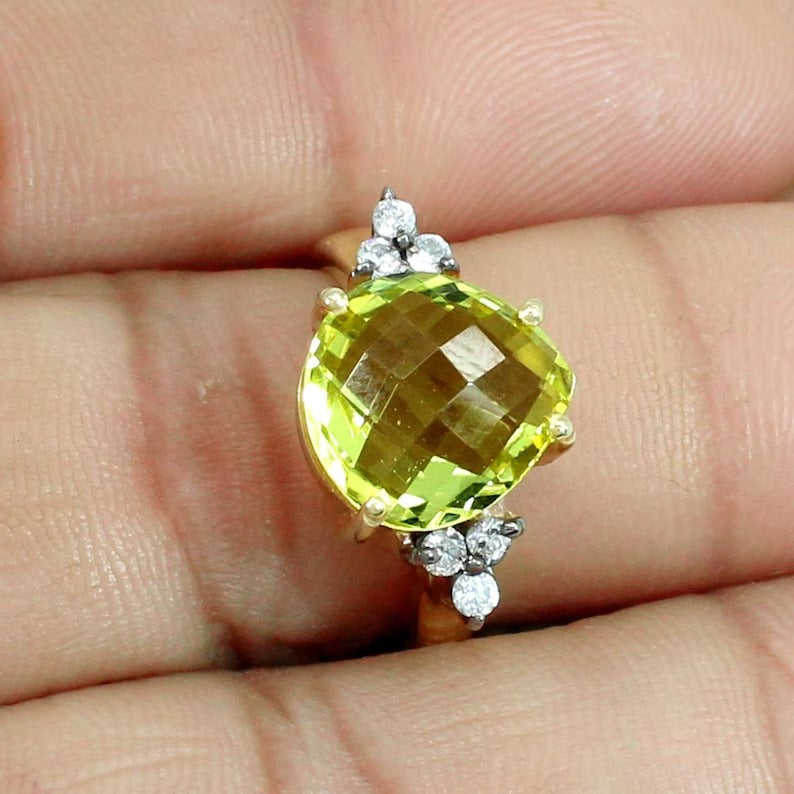 Lemon Quartz & Cubic Zircon (CZ)Gemstone